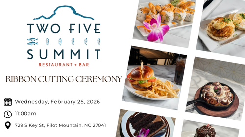 Join us for the Grand Opening of Two Five Summit Restaurant + Bar! We’ll kick off the celebration with a ribbon cutting at 11:00 AM, and we’d love for Chamber members and the community to come out and help us welcome them.